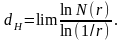 Реальне визначення фрактальної розмірності за допомогою, наприклад, чисельних методів насправді ніколи не проводиться на нескінченній безлічі, і число крапок, що покриваються, обмежене деякою величиной N0. Тому для кінцевого числа крапок завжди існує мінімальна відстань між ними rmin. При зменшенні r, коли зачинає виконуватися нерівність rn < rmin, величина N(rn) перестає змінюватися, досягаючи значення N0. Тому для визначення dH годиться лише деяка прямолінійна ділянка, лежача між дуже великими і дуже малими значеннями 1/r (мал. 4.3), якщо, звичайно, він існує.