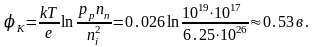 В соответствии с граничным условием pn=ni2exp(U/φT) [4] для носителей заряда у коллектора имеем