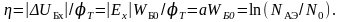 Это означает, что при экспоненциальном распределении примеси напряженность электрического поля практически во всей квазиэлектронейтральной базе постоянна, за исключением небольшой приколлекторной части базы, как правило, занятой ОПЗ коллекторного перехода. Знак минус означает, что поле в базе направлено против оси х, т. е. ускоряет электроны от эмиттера к коллектору. Для оценки «силы» влияния ускоряющего поля в базе вводят понятие фактора поля, который показывает, во сколько раз разность потенциалов в базе ΔUБx=ExWБ0, возникающая за счет наличия «встроенного» поля в базе Ех, больше φТ: