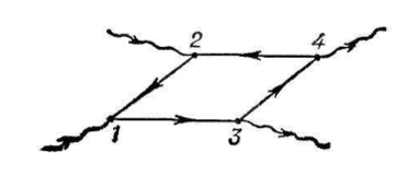 На мал. 1 змальована діаграма, відповідна розсіянню фотона на електроні: у початковому стані присутні один електрон і один фотон; у крапці 1 вони зустрічаються і відбувається поглинання фотона електроном; у крапці 2 з'являється (випускається електроном) новий, кінцевий фотон. Це — одна з простих діаграм Комптон-ефекту.