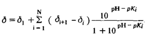 В данном случае функциональная зависимость является несколько более сложной, чем описываемая уравнением, так как здесь для описания равновесия необходимо использовать более одного значения рК. Используя закон действующих масс, можно расширить уравнение на N значений pKj Если кооперативные эффекты отсутствуют, то для N значений рК; можно просто записать сумму