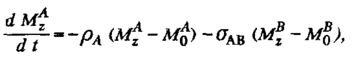 В этих уравнениях рА и рв обозначают скорости спин-решеточной релаксации ядер А и В, Oab – скорость релаксации, описывающая обмен между ядрами А и В, M0 – намагниченность в состоянии термодинамического равновесия. Скорости релаксации определяются следующим образом: