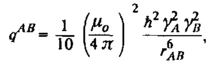где мп – магнитная проницаемость вакуума, гав – расстояние между спинами A Ь В.