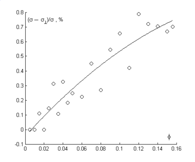 Из графика видно, что концентрационная зависимость электрической проводимости имеет максимум, который приходится на концентрацию магнитной жидкости около 10%. Далее величина электропроводности плавно спадает с уменьшением концентрации.