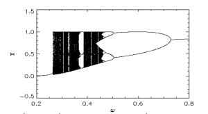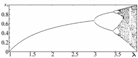 Бифуркационная диаграмма для данного отображения имеет вид: