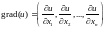 Пусть u=u(x1,x2,…,xn) – функция, определенная в любой точке действительных чисел. Градиентом u является N - вектор-функция, обозначаемая grad u и определенная следующим образом: