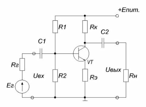 Пусть транзистор VT имеет крутизну рабочего участка передаточной вольт–амперной характеристики S. Тогда коллекторный ток, вызванный входным сигналом, будет равен