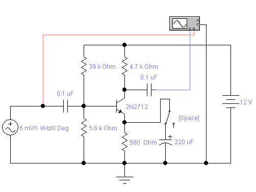 Рисунок 1.11- Принципиальная схема для проверки влияния последовательной отрицательной обратной связи по току на работу усилителя.