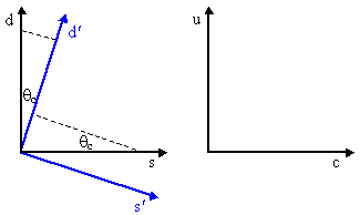 отличаются друг от друга и от констант лептонных процессов. Казалось, что универсальность слабого взаимодействия нарушается. Однако оказалось, что эти константы можно связать между собой. Это уже в 1963 году было сделано Н. Кабиббо, который для связи констант в-распада и распада странных частиц ввел параметр - угол Кабиббо (рис.5).