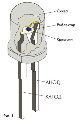 Самая распространенная конструкция светодиода — традиционный 5-миллиметровый корпус (рис. 1). Конечно, это не единственный вариант «упаковки» кристалла.