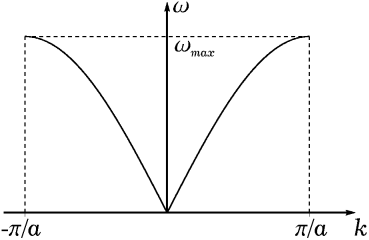 | Рис. 1.2. Закон дисперсии колебаний цепочки с одним атомом в примитивной ячейке. |