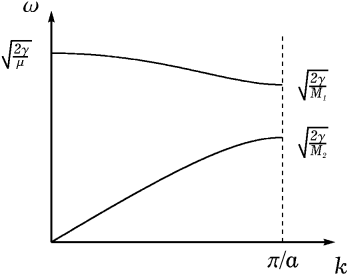 Ниже мы увидим, что в цепочке с двумя (и более) атомами в элементарной ячейке наряду с акустическими могут распространяться волны другого типа.