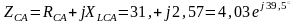 где ZCA=4,03 Ом, φCA=39,5º.
