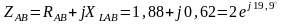 где ZAB=2 Ом, φAB=19,9º;