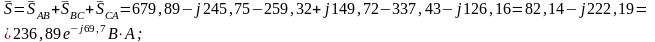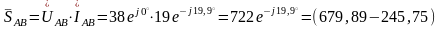 где SAB=722 BּA, PAB=679,89 Вт, QAB=-245,75 вар;