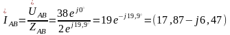 модуль IAB=19 А, ψAB=-19,9º;