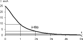 Аналогично вычисляем значения разрядного тока согласно закону изменения переходного тока при разряде конденсатора для тех же значений времени.