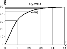 uуст=U - установившееся значение напряжения при заряде конденсатора