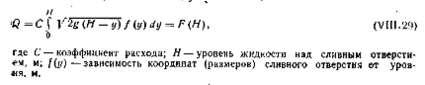 Используя уравнение (VIII.29), можно вывести зависимость между Q и Н для отверстия любой формы. Для получения равномерной шкалы прибора эта зависимость должна быть линейной: