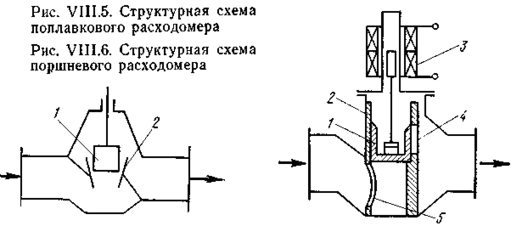 В поршневом расходомере (рис. VIII.6) чувствительным элементом является поршень, перемещающийся внутри втулки 2.
