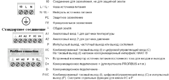 | Электрические соединения | В активном режиме подключение к электронным счетчикам осуществляется через встроенный источник питания 24 В DC / I ≤ 50 мА; В пассивном режиме подключение к электронным (EC) или электромагнитным счетчика (ЭМС) осуществляется через внешний источник питания ≤ 19 - 32 В DC / I≤ 150 мА. |
