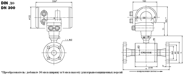 | Опционально расширенный диапазон температур рабочей среды | от 25°C до 220°C (от 13°F до +428°F) до размера DN150. |