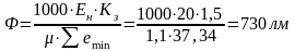 Выбираем светильник марку и мощность, количество ламп. (НПП-04-1*60) Д-1 КПД=50%