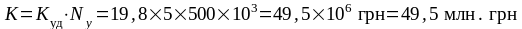 К = 1496,50+44,90+74,83=1616,23 млн. грн.