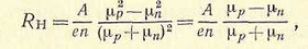 так что при mp = mn , RH = 0. Для веществ с одним типом носителей заряда o = enm, и |Rn| = A/en, следовательно, измерив постоянную Холла и проводимость, можно найти подвижность носителей заряда: