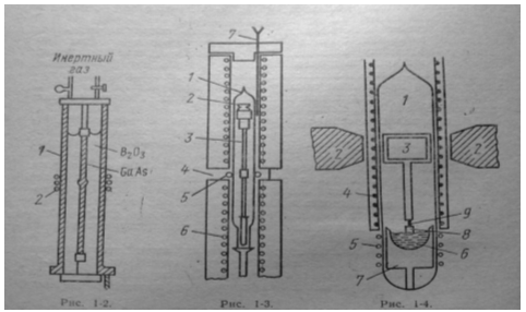 Используются два варианта вытягивания кристаллов по методу Чохральского: в запаянной ампуле, где создается требуемое давление паров мышьяка, и под слоем флюса, например В2О3.