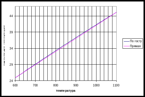 В нашем случае прямая, соединяющая две крайние точки рабочего диапазона датчика 600 и 1100 єС, является идеальной линейной характеристикой преобразования.