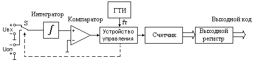 Рассмотрим принцип работы двухтактного интегрирующего АЦП.