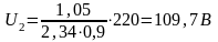 Выбор трансформатора производится по расчётным значениям первичного и вторичного токов (I1,I2), фазных напряжений (U1,U2) и типовой мощности Sт. Расчётное значение фазного напряжения вторичной обмотки трансформатора: