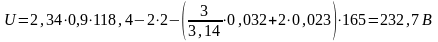 Выпрямленное напряжение на зажимах двигателя при угле управления α = 0 с учетом максимального понижения напряжения сети, падения напряжения на трансформаторе, вентилях и сглаживающем реакторе (для трёхфазной мостовой схемы):