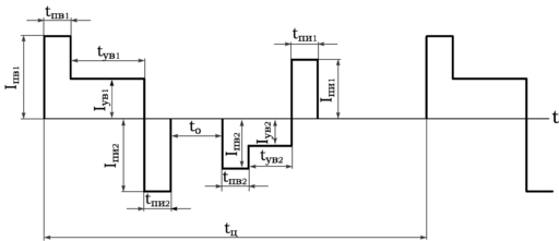0 – время паузы в нагрузке; индексы 1 относятся к комплекту «Вперед», а 2 – к комплекту «Назад» двухкомплектного преобразователя.