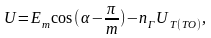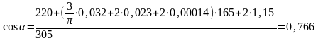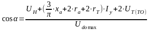 Первая гармоника пульсаций имеет максимальную величину и хуже всего фильтруется, поэтому остальные гармоники не рассматриваются. Амплитуда первой гармоники пульсаций при заданном номинальном напряжении на двигателе UН определяется углом управления α, который можно определить, преобразовав уравнение внешней характеристики. Вместо rт подставим половинное значение, так как два тиристора объединены параллельно.