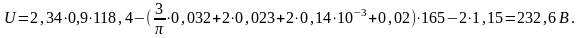 Напряжение U > UH (232,6 В > 220 В), следовательно, выпрямитель обеспечивает заданный режим.