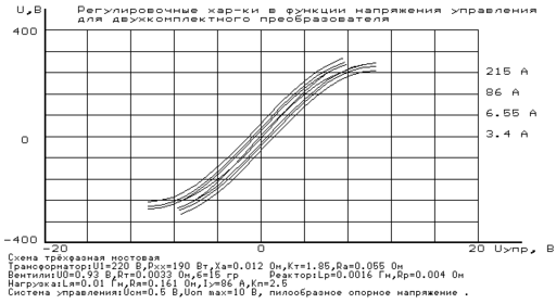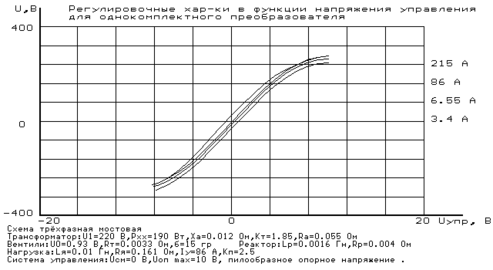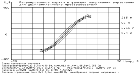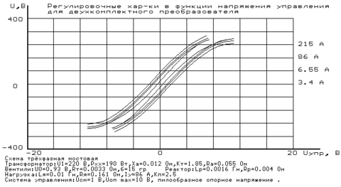 Рисунок 8. Регулировочные характеристики преобразователя U = f(Uупр), полученные с помощью ЭВМ (при Uсм = 0)