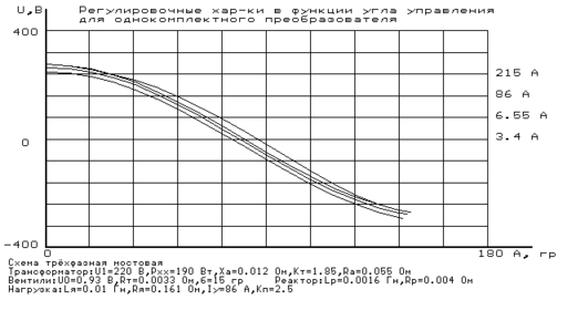 Рисунок 7. Регулировочные характеристики преобразователя U = f(α), полученные с помощью ЭВМ
