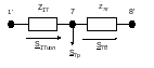 Определяем потоки и потери мощности в линиях на примере кольца УРП - А-Е-УРП (1`-7-8-1``). Схему замещения кольца укажем на рисунке 5.