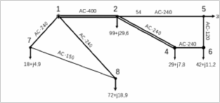 Как видно из приведённых формул точкой потокораздела в кольце будет узел А (8) как по активной, так и по реактивной мощности.