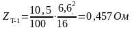 uk = 10,5 %; Uвн = 115 кВ, Uнн = 6,6 кВ, Pхх = 14 кВт, Рк = 58 кВт,