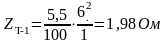 Находим полное сопротивление рассчитываемого участка схемы, Ом;
