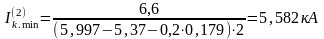 Находим минимальное значение тока от 20% длины кабельной линии, кА;
