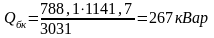 Находим суммарную мощность низковольтных конденсаторных батарей:
