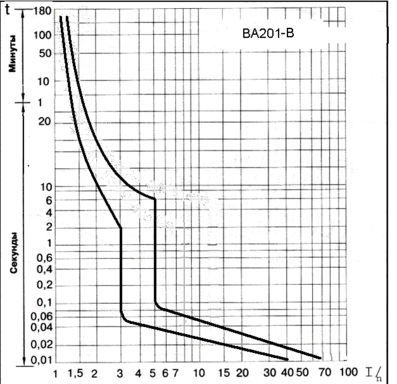 Рис. 1 − Амперсекундная характеристика выключателя серии ВА201-В