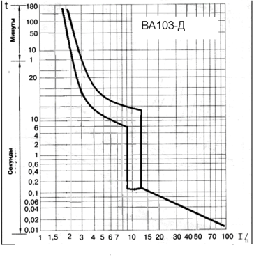 Рис 2 − Амперсекундные характеристики выключателя серии ВА103-D