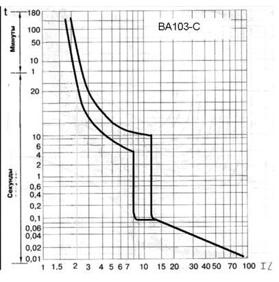Рисунок 3− Амперсекундные характеристики выключателя серии ВА103-С