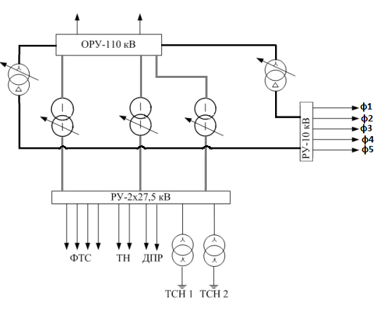1.1 Структурная схема тяговой подстанции…………………………………...10