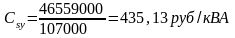 Стоимость 1 кВА установленной мощности рассчитываем по формуле: